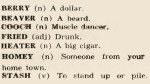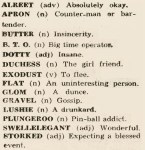 Swing/Jazz era slang – note many words have retained their slang meaning to now, some have disappeared, and still others’ meanings have changed greatly (and humorously as well!)