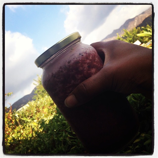 Snacks. Spinach, banana, berry mix, orange smoothie. #urbansoulfarmer #zoeblaq