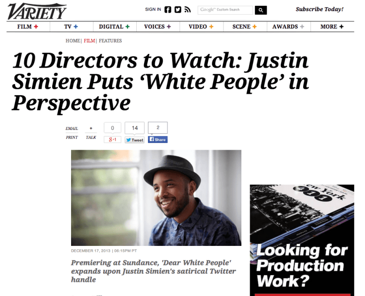 Check me out! Dear White People made me one of Variety’s 10 Directors to Watch! http://bit.ly/18PW8DU