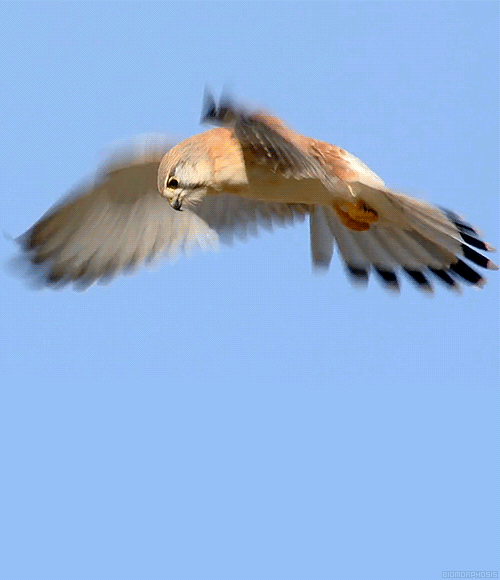 Kestrel is a small falcon known for its hovering flight. They also have the extraordinary ability to keep their head totally still, even in strong winds. This allows them to pinpoint and catch small mammals by sight alone.