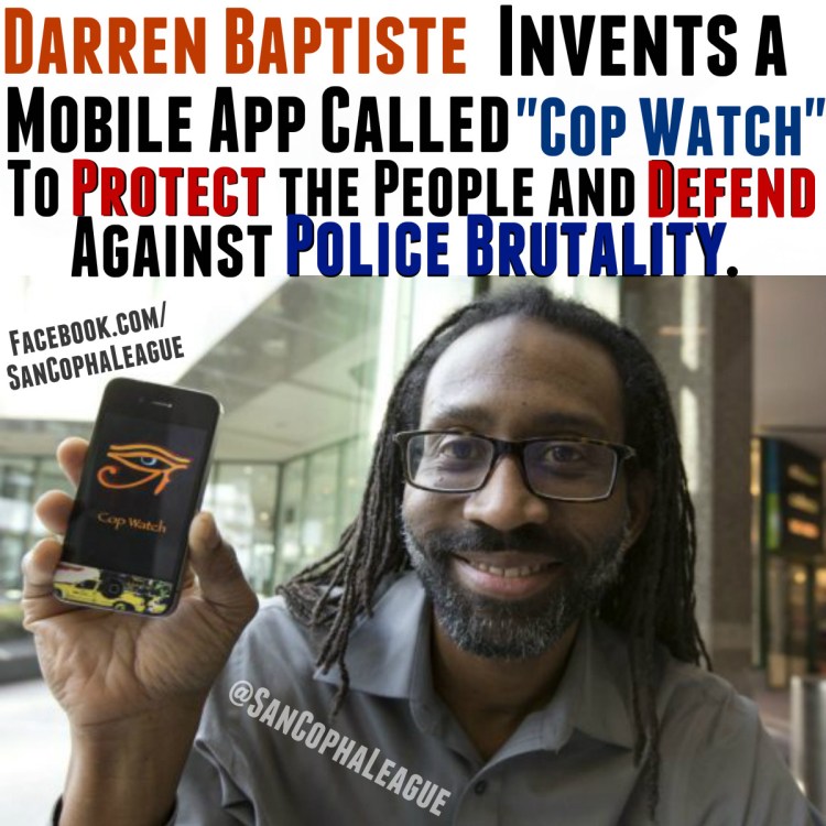 Darren has experienced countless cases of Police Brutality in his lifetime and ever since the emergence of the internet anyone can see the atrocious cases of brutality on YouTube. Darren is wise enough to know that the Police cause a lot of the issues and use their badge, gun and law as protection when they brutalize people in the Black Community. A Black Person’s word means nothing against a Cops word in court.The “Cop Watch” app begins shooting automatically once it’s opened, and as soon as recording is stopped, instantly uploads to YouTube. At the same time, an email is sent to a community-based Network for the Elimination of Police Violence , with the videographer’s location and a URL for the video. This app provides evidence in the favor of our people to help combat a serious issue. Baptiste designed the app to feature the “Eye of Horus” as a symbol of protection. Salute to Darren for taking a stand against Police Brutality.Written By: @Champion_Us