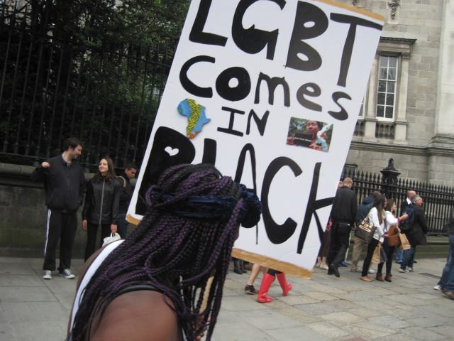placard reads: “LGBT Comes In Black”