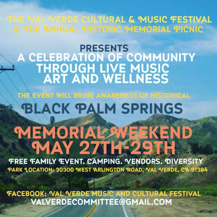 Come out to play in historical Val Verde, Ca on memorial weekend. So much history in this tiny town that used to be called Black Palm Springs. Free Camping, live music, poets, phenomenal speakers, vendors and wellness tent.