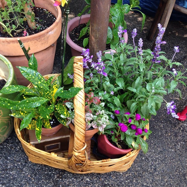 I #recycled a picnic basket for a flower holder. #urbangardening #urbansoulfarmer #zoeblaq #flowers