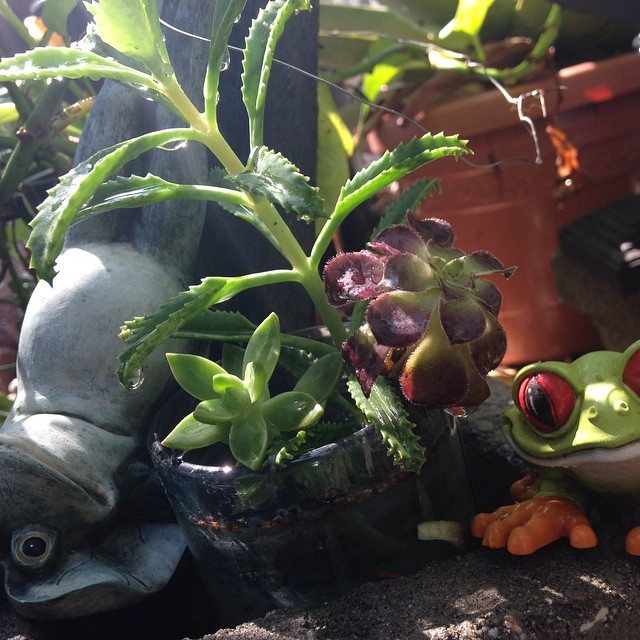 Today in the #urbangarden. #succulent #frogs #containergarden #urbangardening #zoeblaq #nofilter