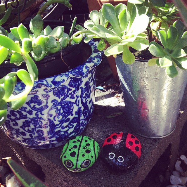 #succulent #petrocks #frogs #ladybug #urbansoulfarmer #zoeblaq #urbangardening #containergarden