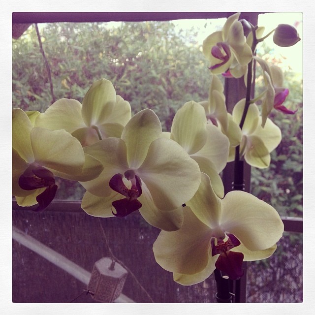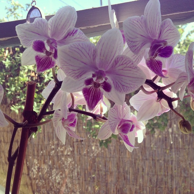 #orchids in my kitchen window. I love fresh flowers๐ #zoeblaq #urbansoulfarmer #bamboo #purple