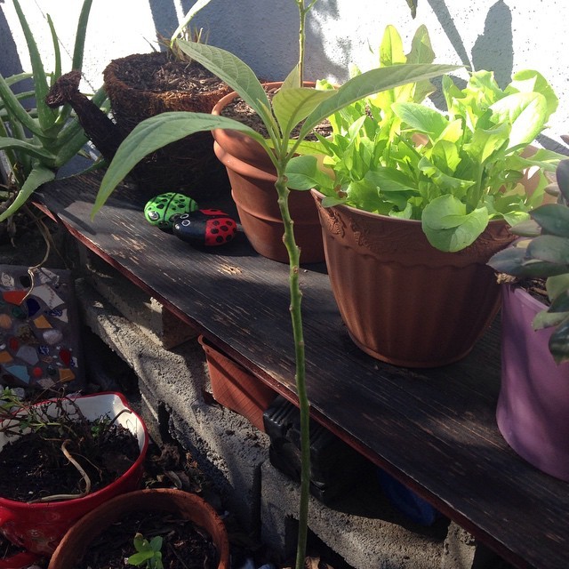 Today in the #urbangarden. #lettuce #avocado #lemon #aloe #succulents #peppermint #petrocks #Urbansoulfarmer #growfood