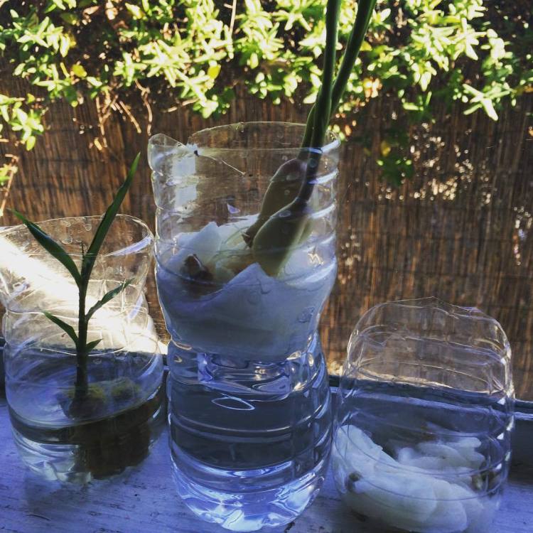 Windowsill experiments. #recycle #garlic #ginger #lemon #urbansoulfarmer #urbangarden #zoeblaq
